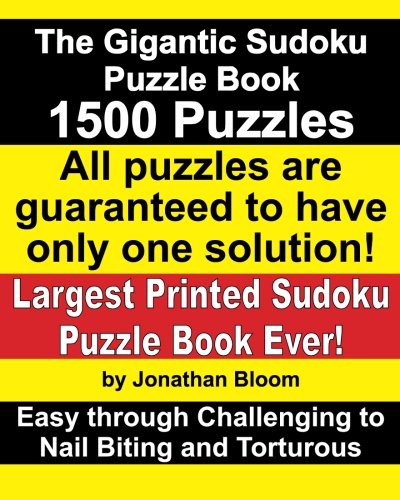The Gigantic Sudoku Puzzle Book. 1500 Puzzles. Easy through Challenging to Nail Biting and Torturous. Largest Printed Sudoku Puzzle Book ever. All puzzles are guaranteed to have only ONE SOLUTION! by Jonathan Bloom